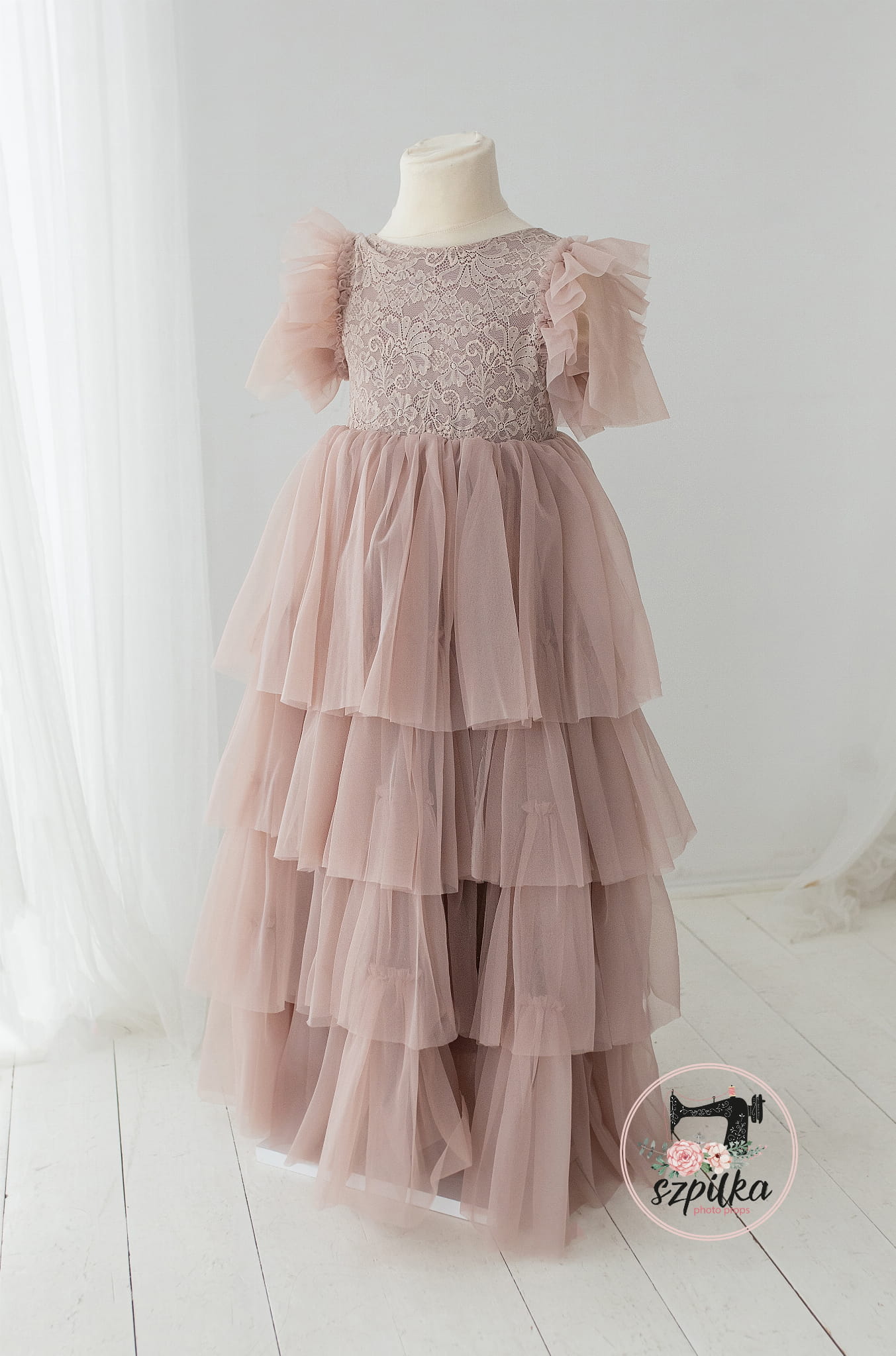 Tiulowa sukienka w kolorze różu weneckiego. Bez wszytej halki